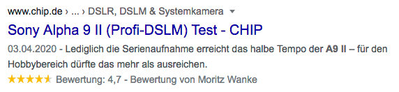 Strukturierte Daten (https://schema.org/) ermöglichen es, Rich Snippets anzuzeigen. Zu diesen gehören unter anderem die bekannten gelben Bewertungssterne: